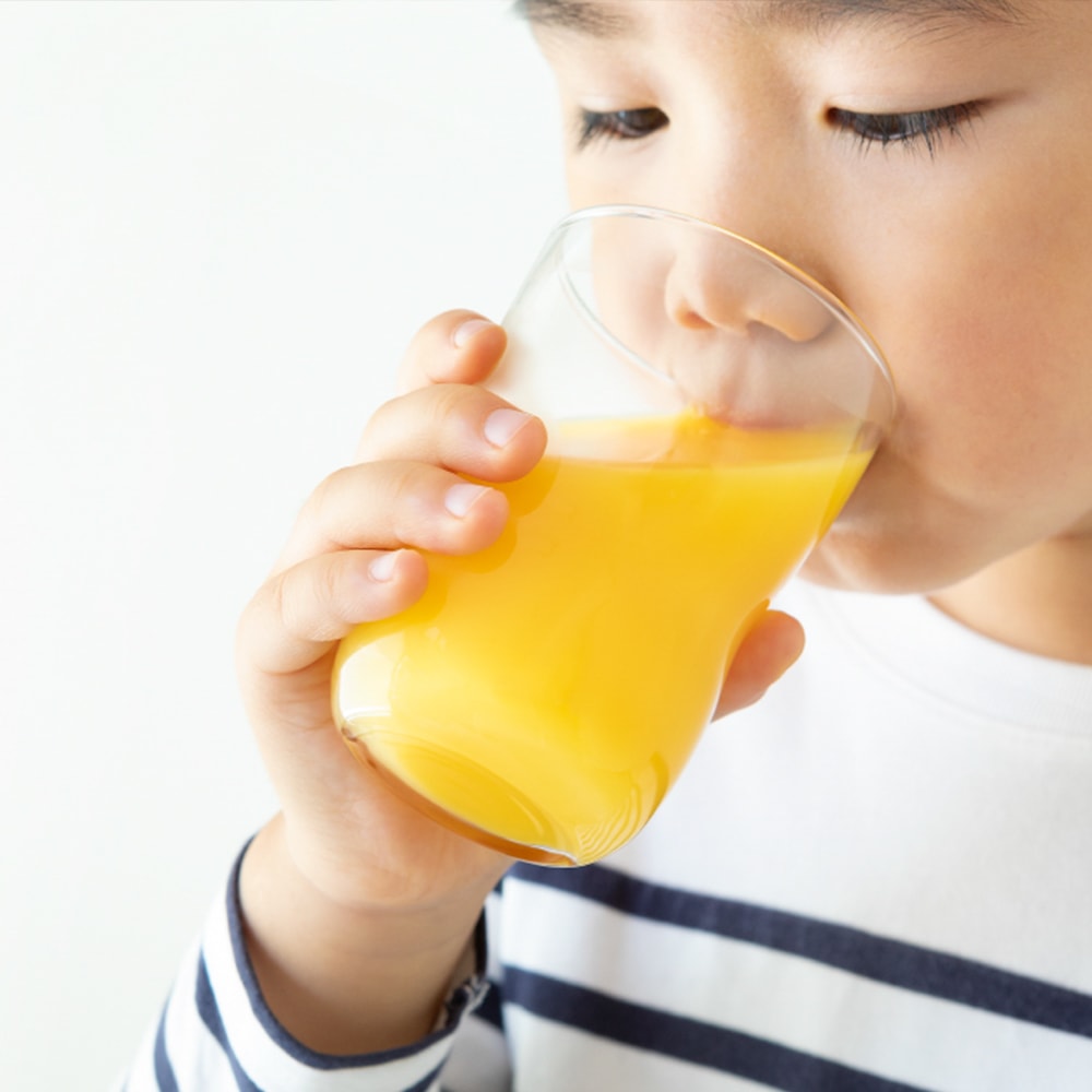 玻璃杯身內縮溫潤,即使是小手也很容易握住。水倒到 8 分滿時大約 150 毫升,剛好適合孩子飲用。