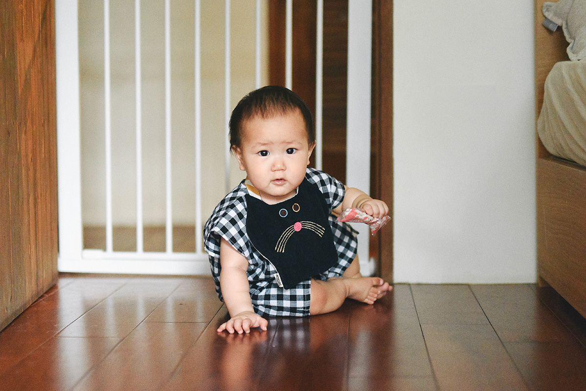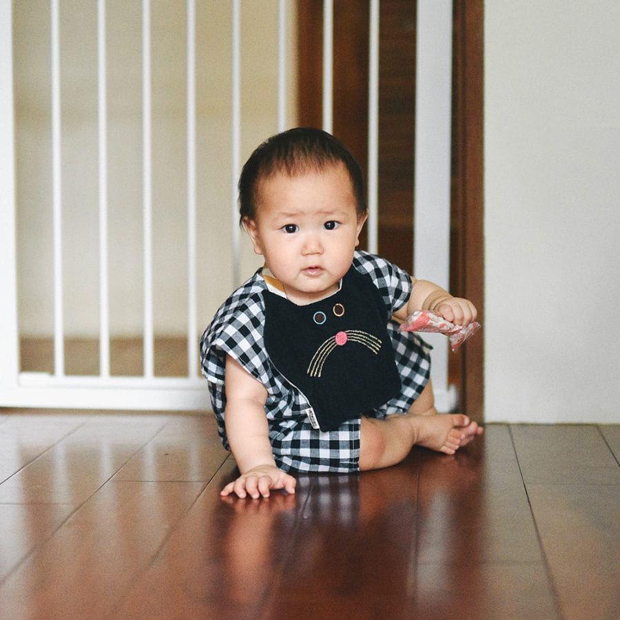 八個月寶寶示範,貓圍兜黑色款已絕版