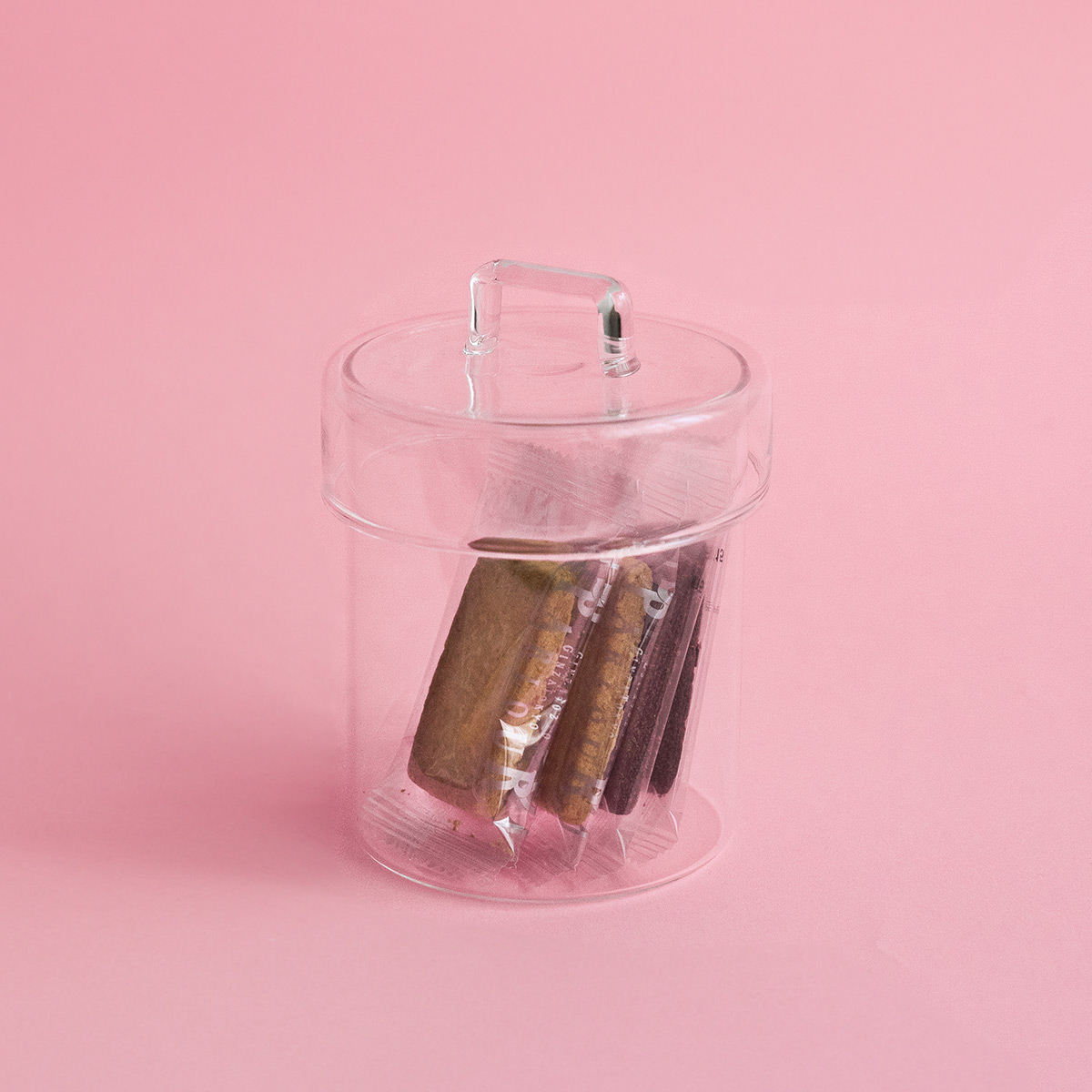 為每天使用的物品安排固定的收納位置,就能讓空間維持整潔有序。這款收納罐即使裝滿物品也依然好看,外觀俐落、不顯雜亂。玻璃材質本身也帶來清潔、透明的感受。