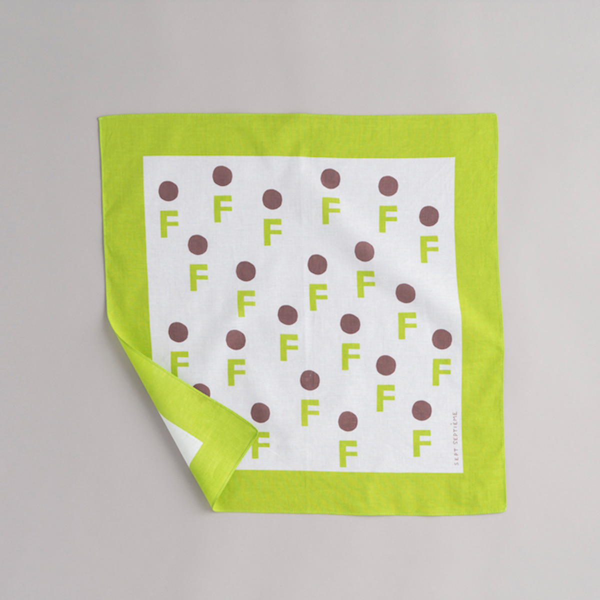 邊緣印有品牌名稱 sept septième 的可愛手繪字母。