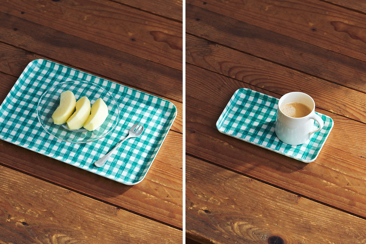 JULES 藍綠格紋清爽的藍與淺米色搭配,夏日飲品的絕配。