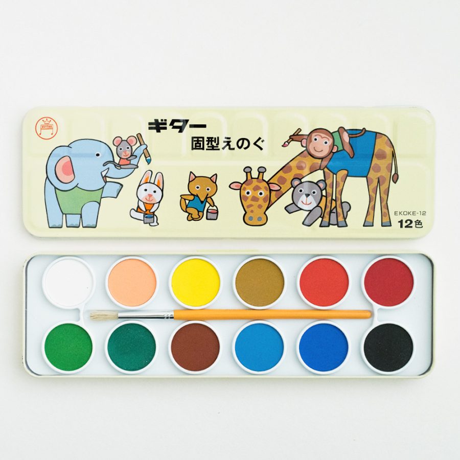 固體水彩盒是由日本創業近百年的文具公司「寺西化学」製造,當時固體水彩盒是為了小學的寫生比賽而製作,推出後深受大人小孩的喜愛,現在日本幼兒園、小學生到大人們都已相當習慣使用固體水彩盒。