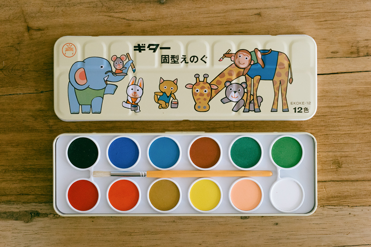 固體水彩盒是由日本創業近百年的文具公司「寺西化学」製造,當時固體水彩盒是為了小學的寫生比賽而製作,推出後深受大人小孩的喜愛,現在日本幼兒園、小學生到大人們都已相當習慣使用固體水彩盒。