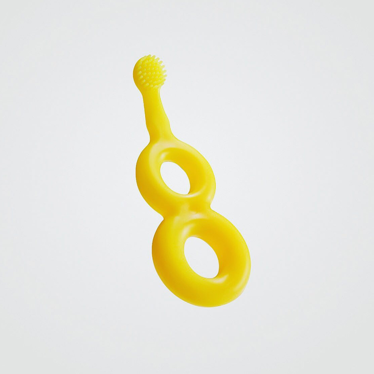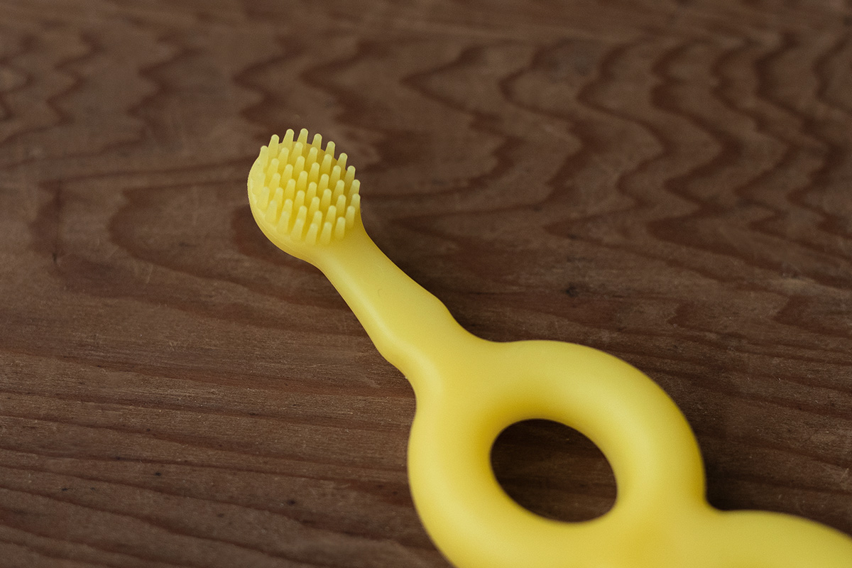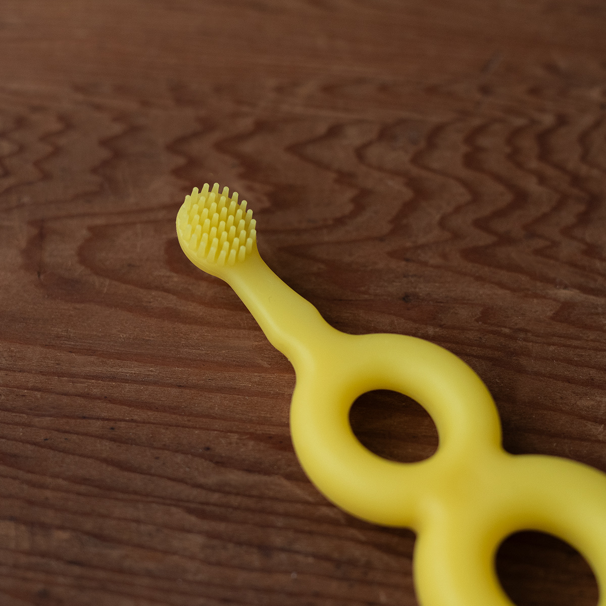 使用柔軟的彈性樹脂製成,即使咬也不會不舒服,讓寶寶自然願意將牙刷放進口中,是啟動牙齒清潔習慣的第一步。