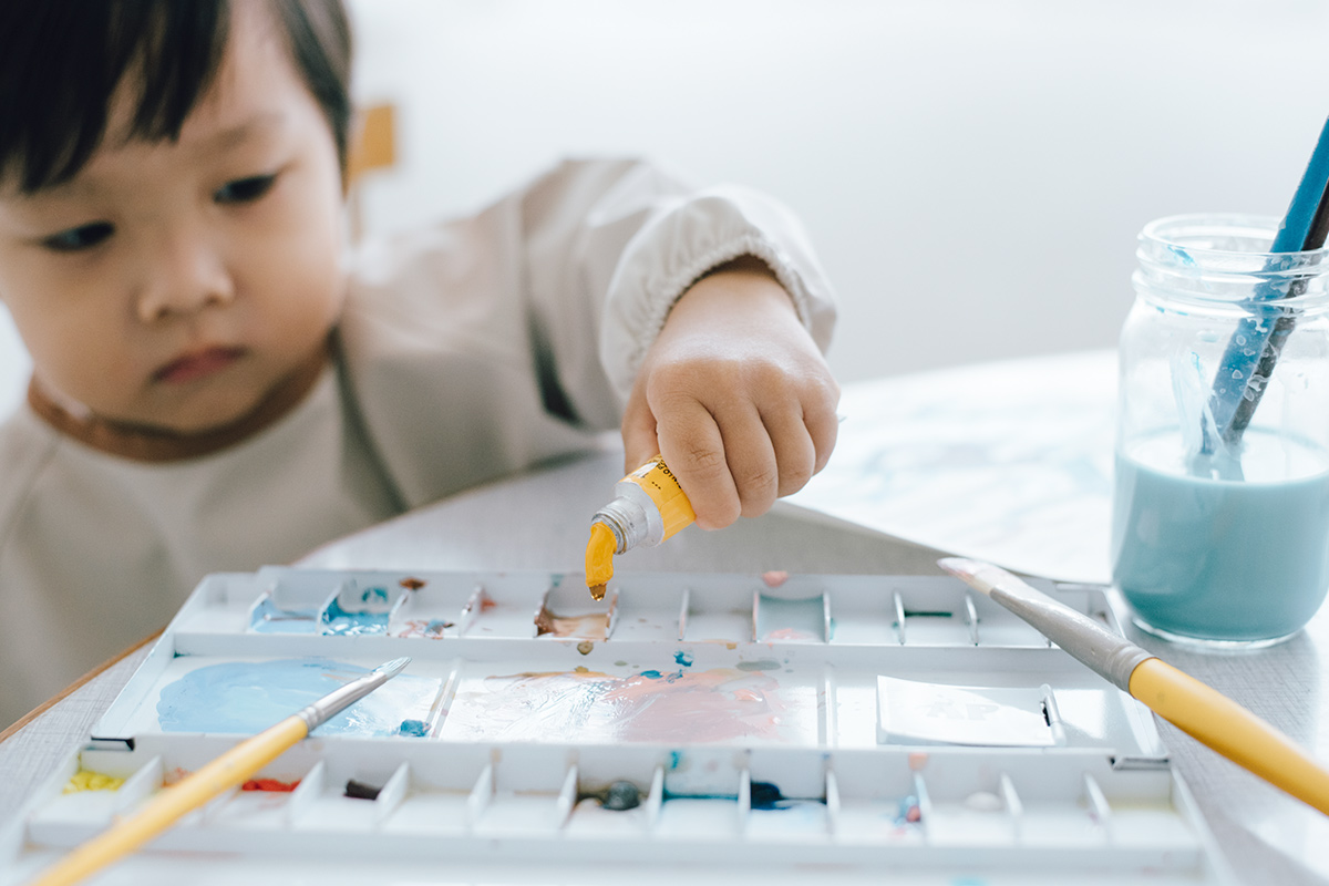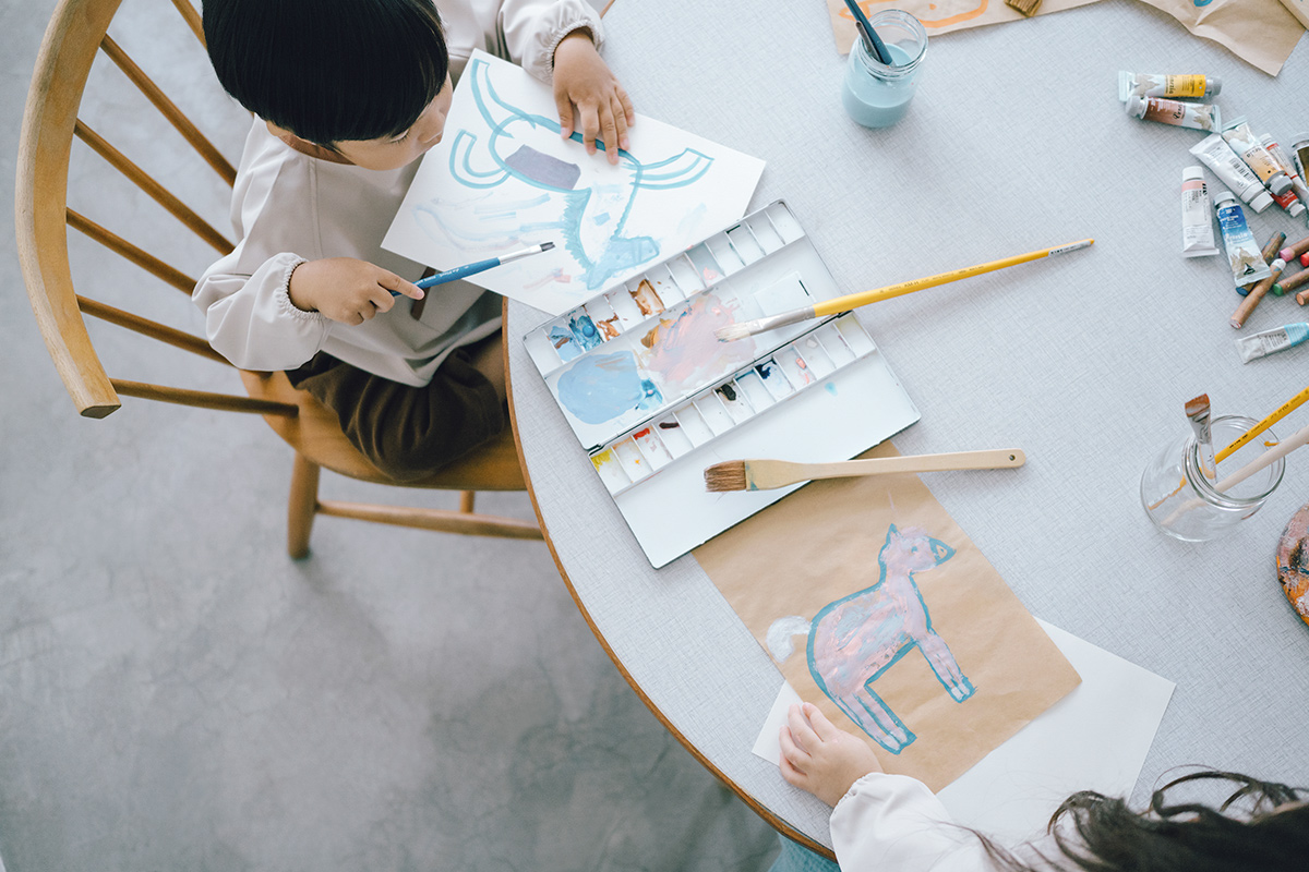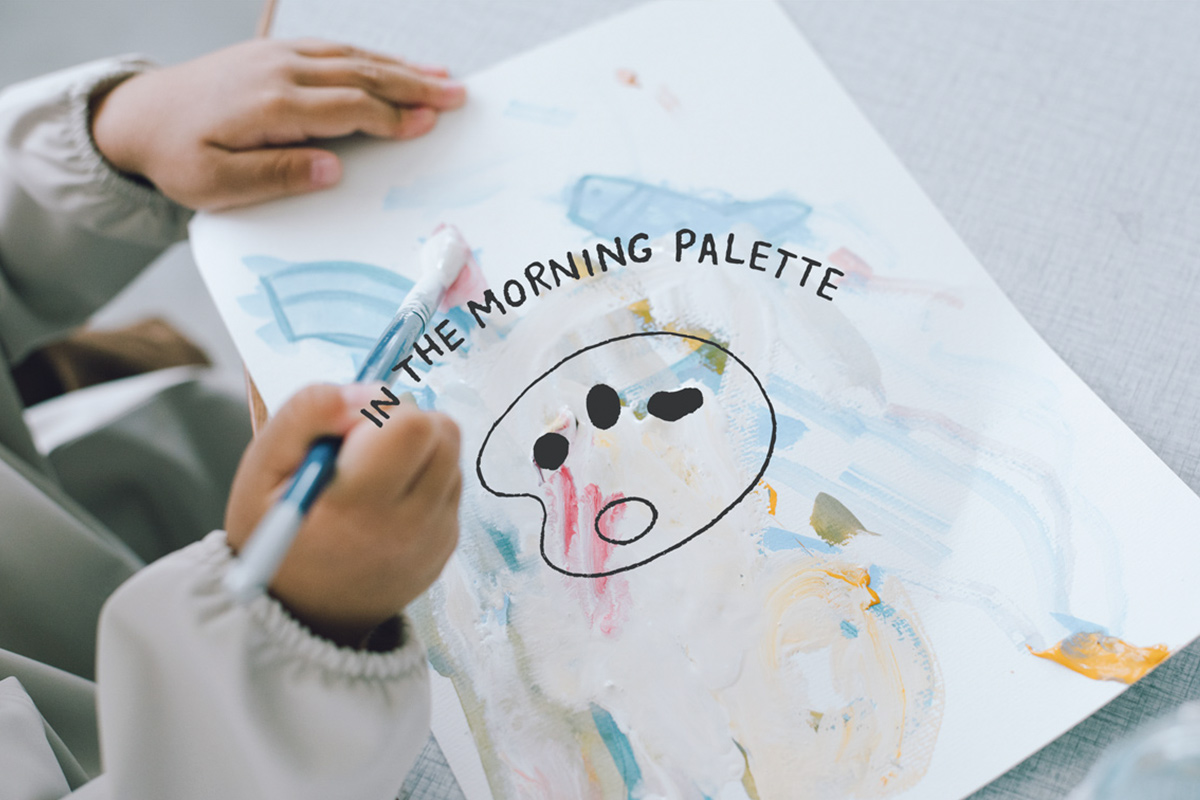 kanan muna 第一個推出的系列 in the morning palette,以畫畫為主題,設計讓孩子能在各個場所隨心所欲創作的用品和服飾。