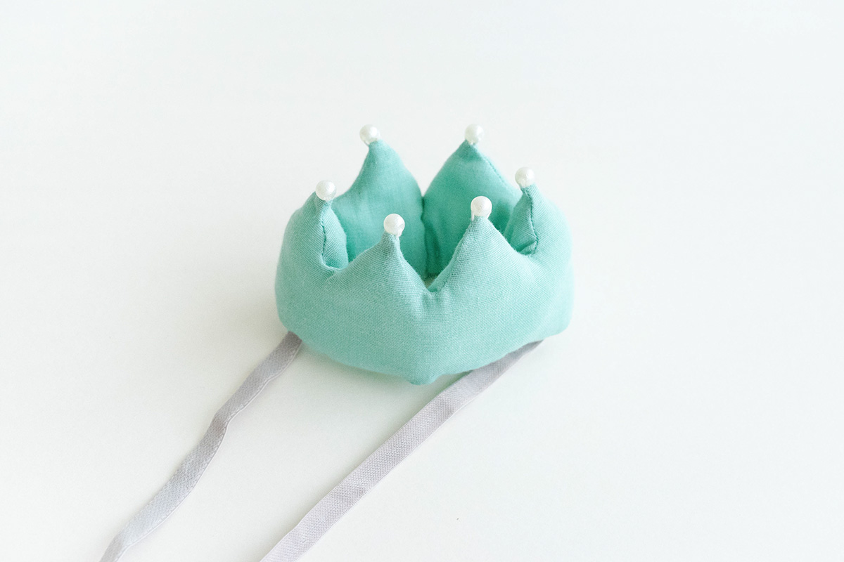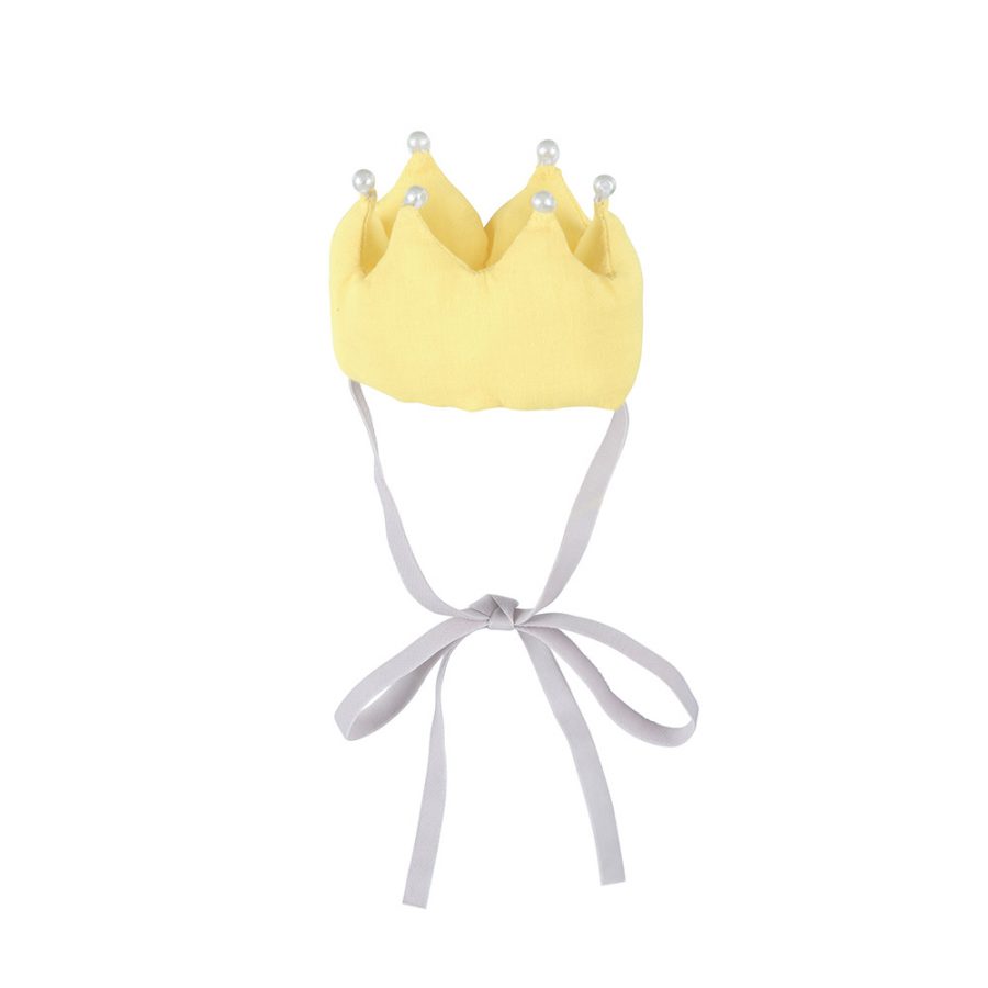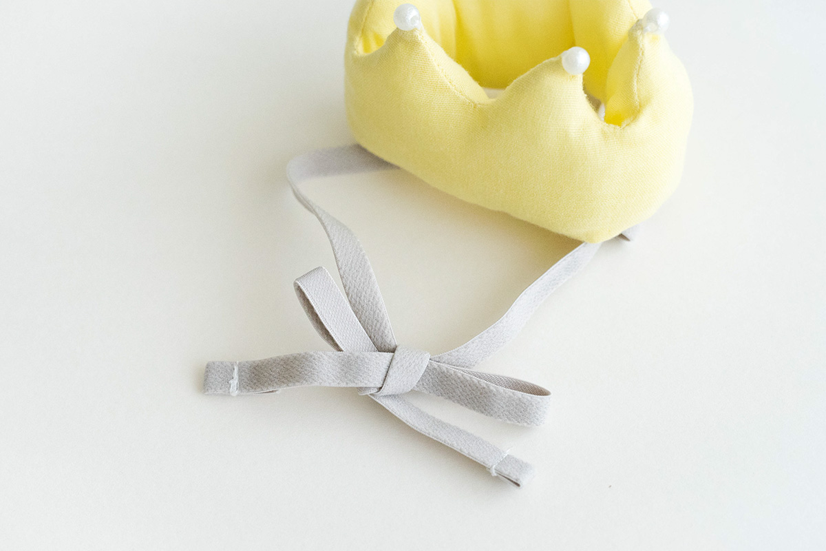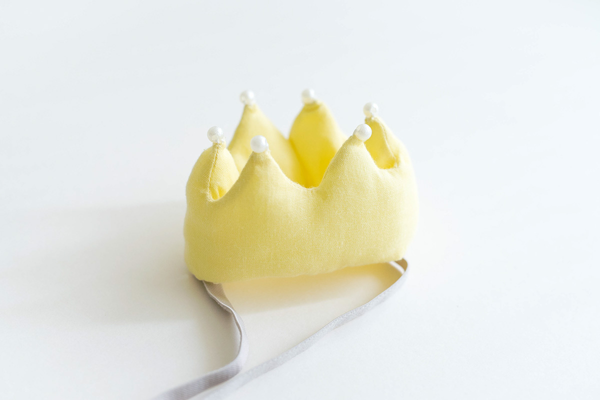 柔軟的雙層紗布製成的小皇冠,串上棉珍珠,有著手作質感的溫暖。