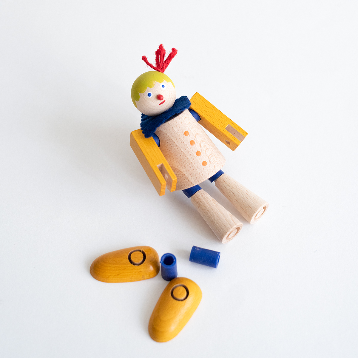 由食品安全塑膠製成的 Jummis 橡膠連接器(拔取時會發出 ㄅㄛ 的聲音),是 Kellner 積木中最重要的物件,可以將不同的木質部件可以靈活的相互組合。