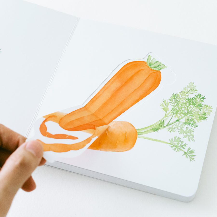 巧妙的翻頁設計,模擬剝皮、削皮的烹調過程,每次翻頁都充滿驚喜!