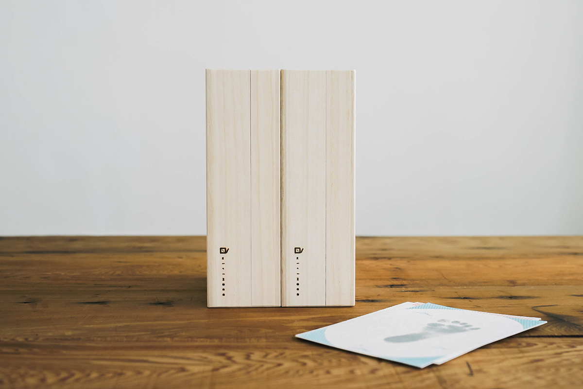 除了收藏紙外,相片、寶寶手套、臍帶皆能收藏進桐木盒中,透過紀錄初生的足跡,成為父母的情感也一併收藏起來了。