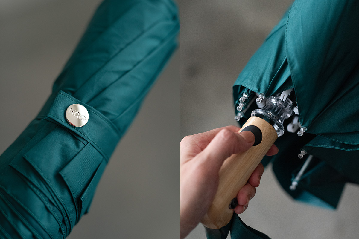Original Duckhead 以誠意設計充滿活力、環保且耐用的雨傘。經過大量研究,每把傘布皆由九個回收塑膠瓶製成,從垃圾掩埋場及海洋中回收而來。傘柄則使用永續來源的樺木,質感與環保理念並存。