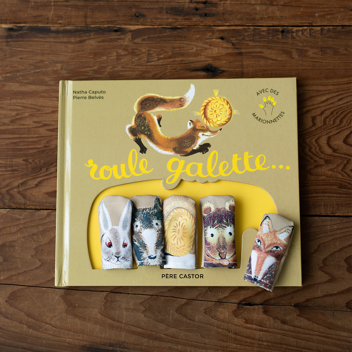 《ROULE GALETTE(avec marionnettes)》為《ROULE GALETTE》的特別版本,隨書附上五個手指偶,兔子、狼、熊、狐狸和主角國王派,讓孩子們能夠邊讀邊演,親身參與故事的演出。