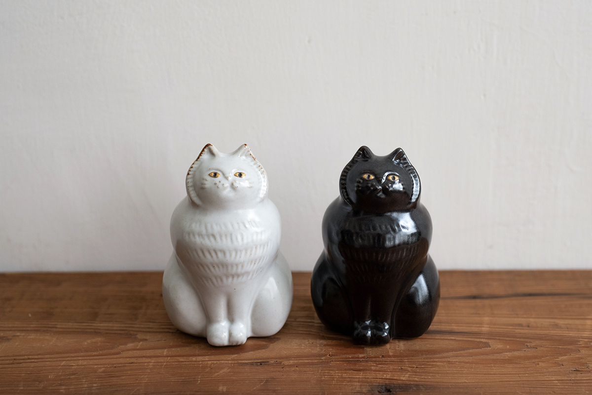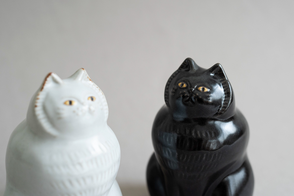 白貓有微霧釉,黑貓有光澤,色澤細膩,那凹凸不平的造型,讓人每次看到都想摸一摸。