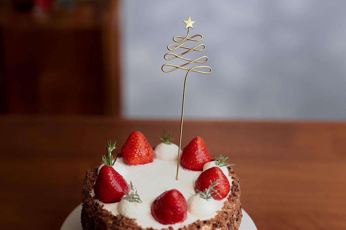 以 BRASS 黃銅製成的插飾,可以插在聖誕派對的蛋糕上作為點綴,也能當作拍照用的道具使用。