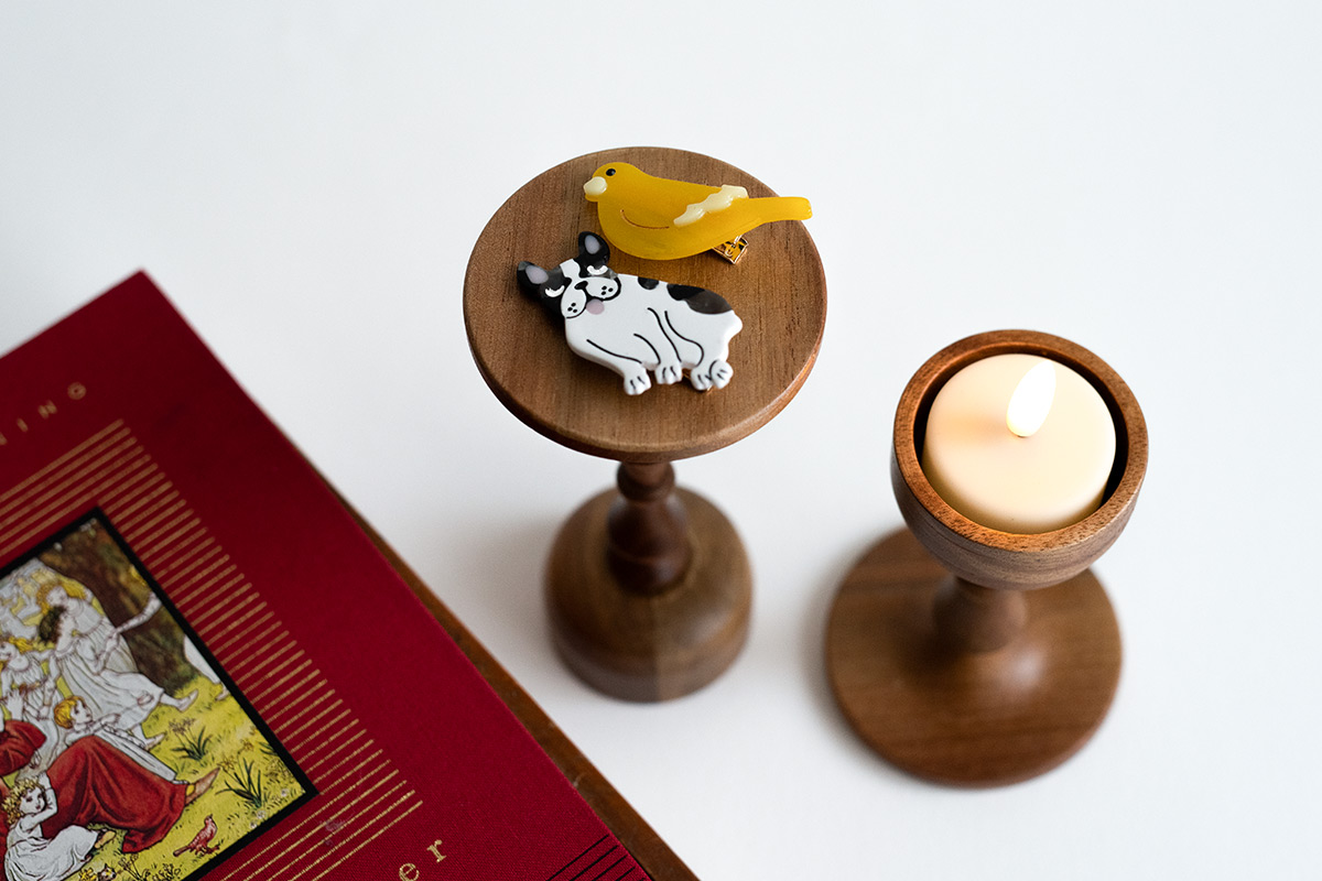 形體優美的木製燭台,散發著柔和溫暖的氣息。