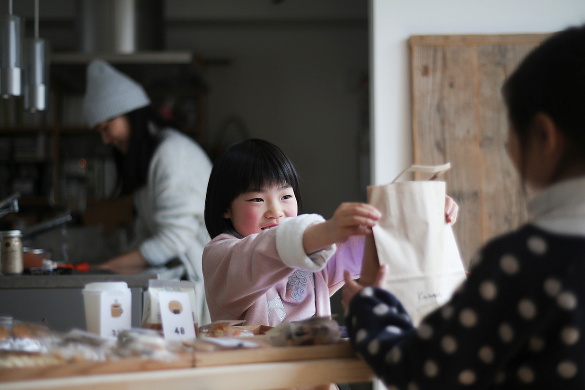 別緻的黑色格子袋,以棉亞麻製作,很輕很柔,收納 Okozukai 帶著出門也可以。