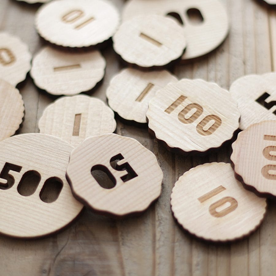 每個硬幣都是由溫暖而天然的無垢木製成,具有獨一無二的木紋,經過仔細打磨及拋光後,質地細緻好摸。
