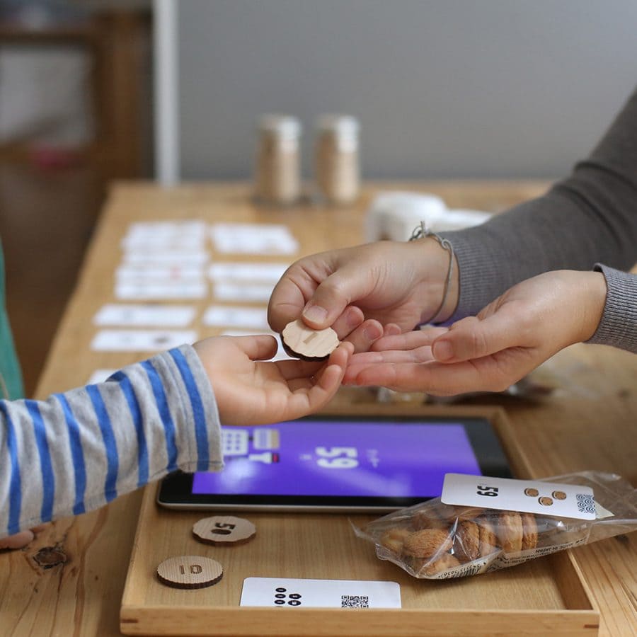 木硬幣的形狀像餅乾一樣,孩子的小手也容易抓握。