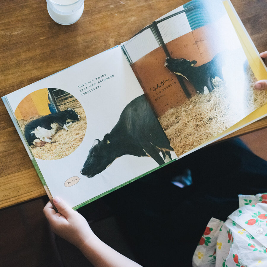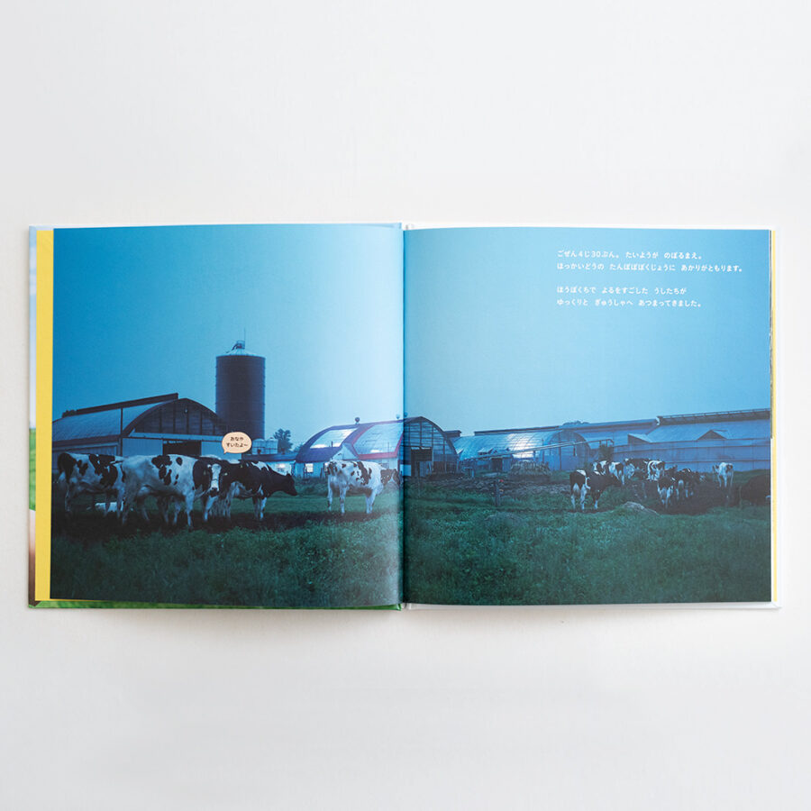 這本「寫真繪本」仔細記錄了牧場的活動、牛奶製作、配送,到最後小朋友飲用,