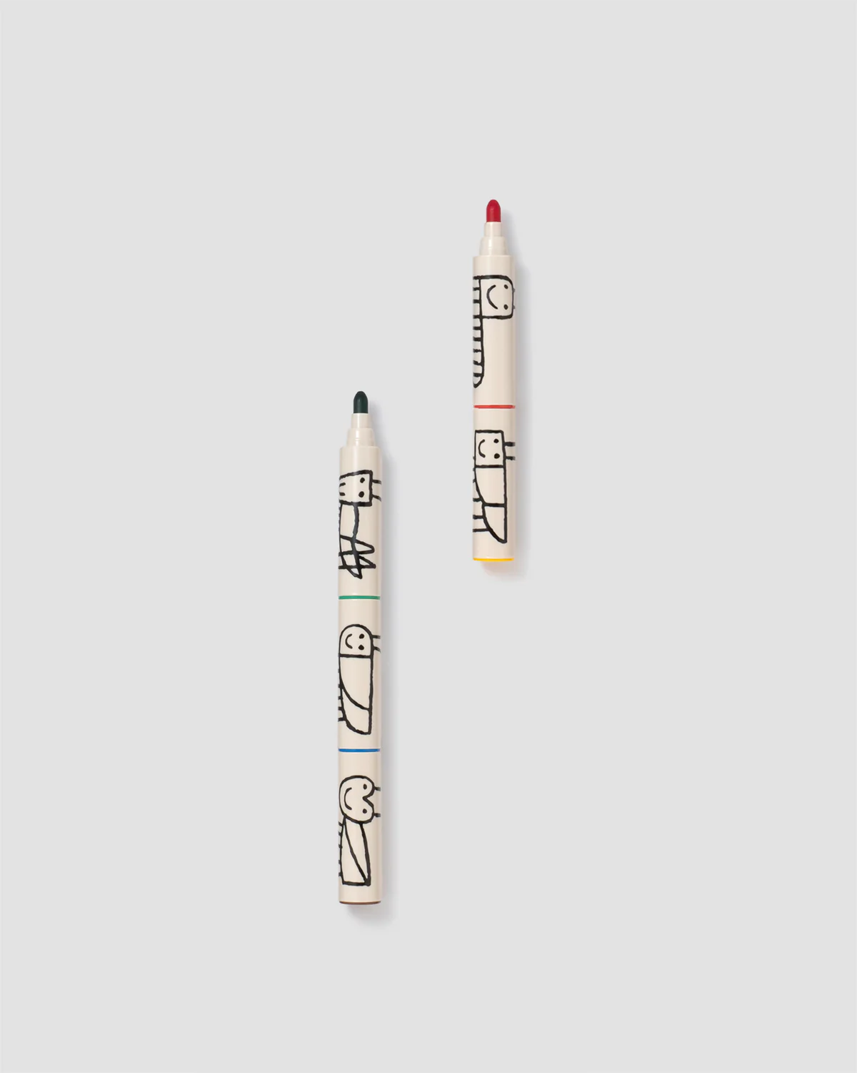 這是一組包含紅色、黃色、綠色、藍色和棕色的可堆疊彩色筆。可以將它們分開與朋友分享,或按照自己喜歡的順序排列。甚至可以連接兩組彩色筆,打造一支超長的彩色筆,為探索無盡的創意提供完美工具。