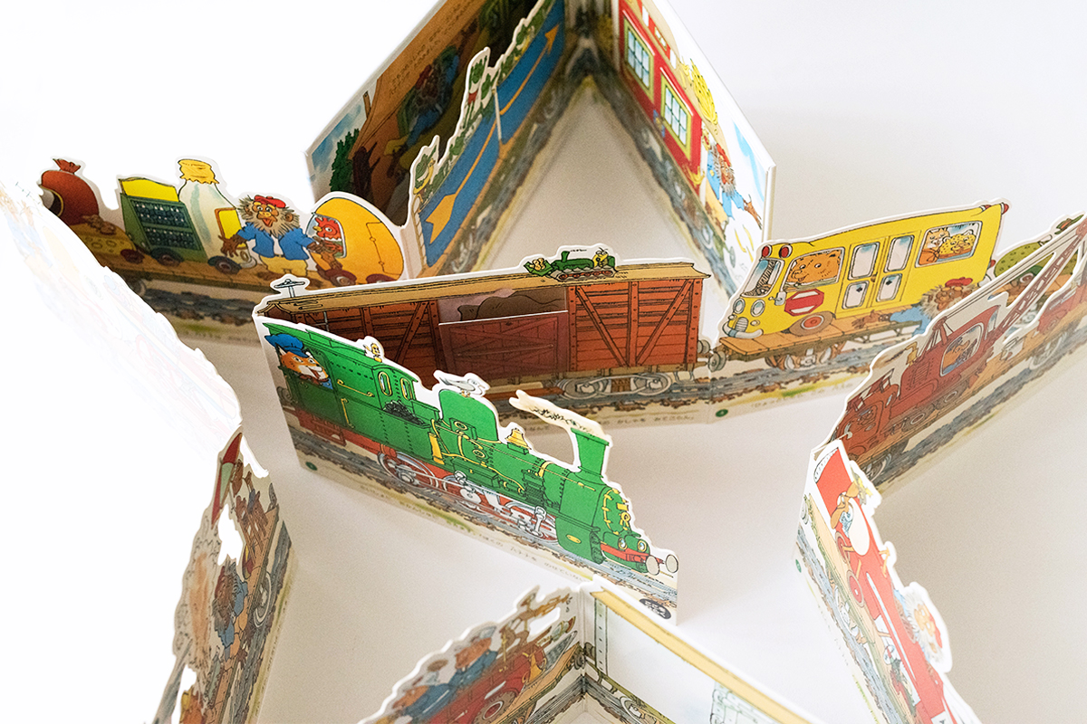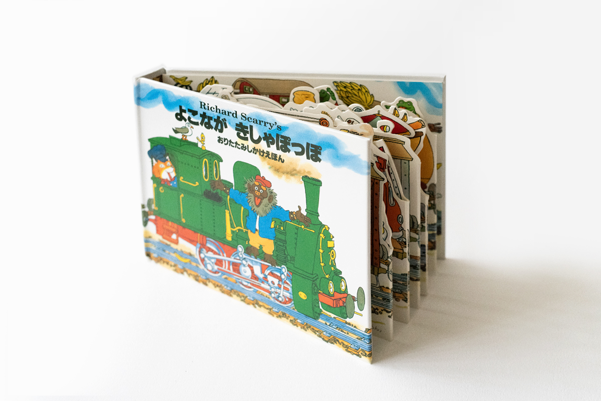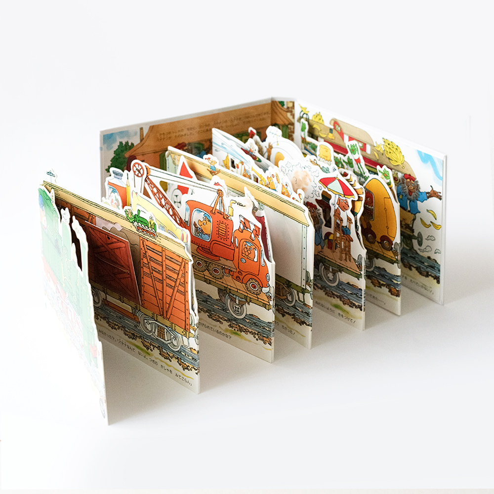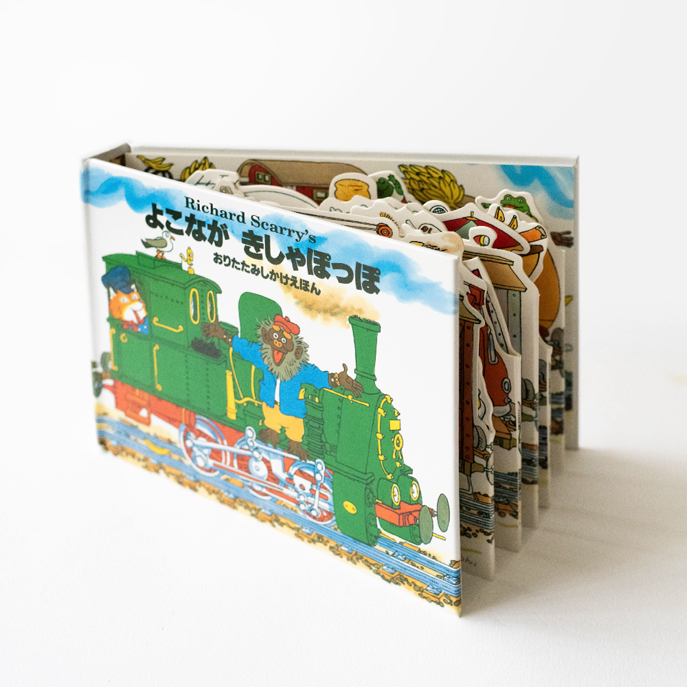 書頁來回摺疊,展開後是輛長達約 2.5 公尺的蒸氣火車,非常帥氣!