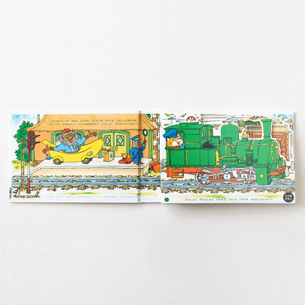 每節車廂的塗裝都不同,熟悉的動物們和奇特的交通工具一一出現,偶爾還會有互動的小機關,是本邊看邊玩的有趣繪本。